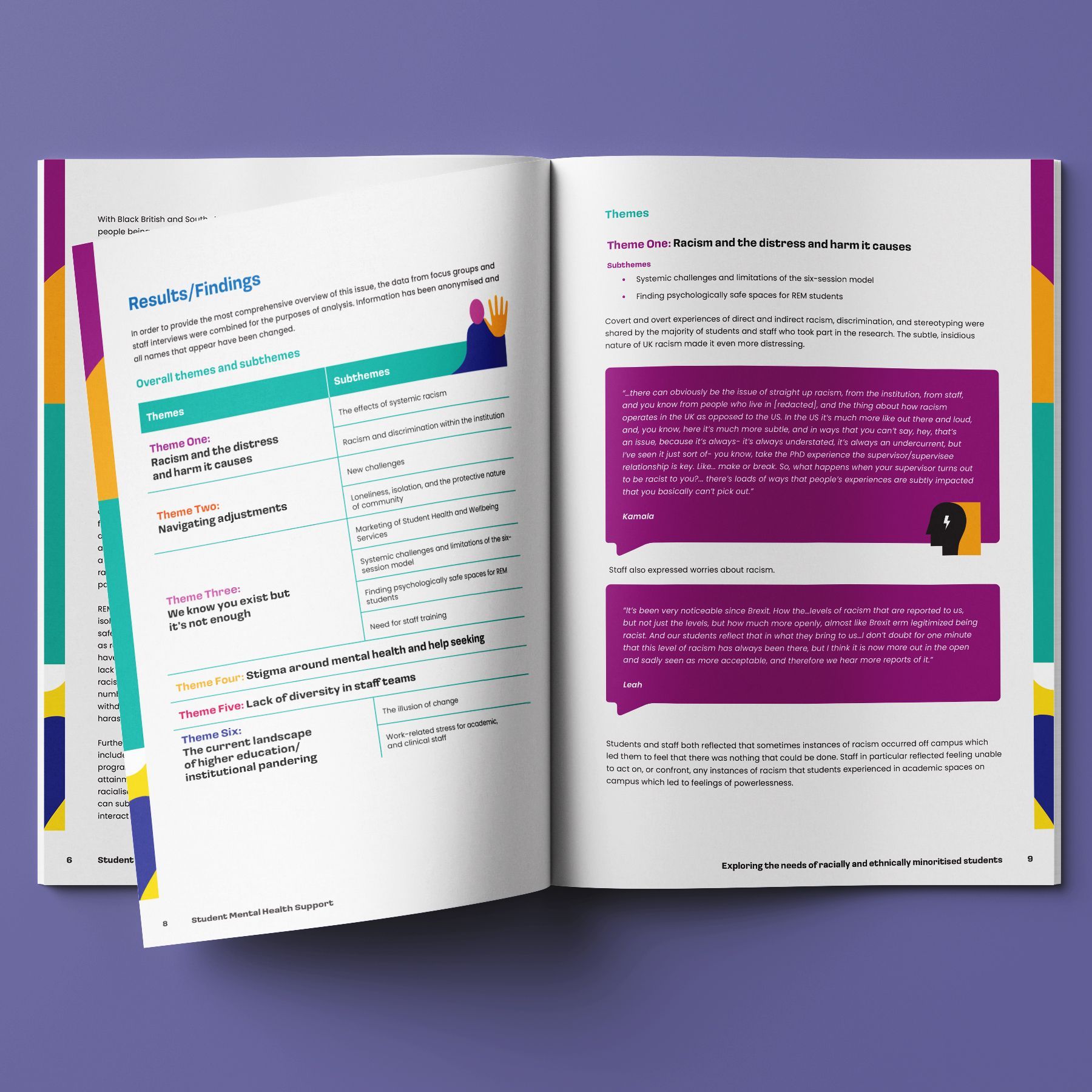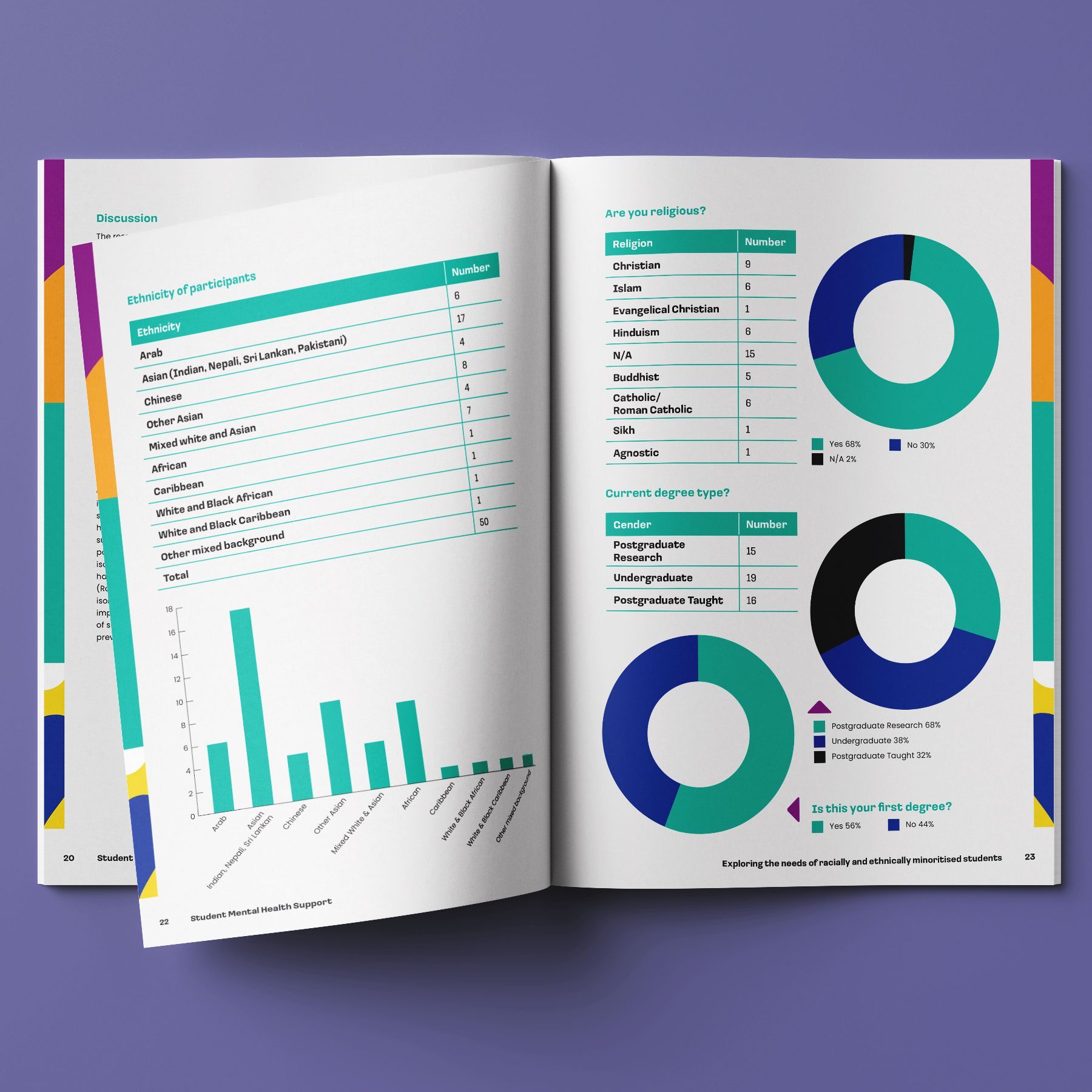 We were commissioned by Newcastle University to design a 28-page report led by a team of clinical psychologists. The document addresses the vital topic of mental health support for students, with a specific focus on the needs of racially and ethnically minoritised students. It serves as both a detailed exploration of challenges and a roadmap for improvement, making clarity and accessibility essential to its success.